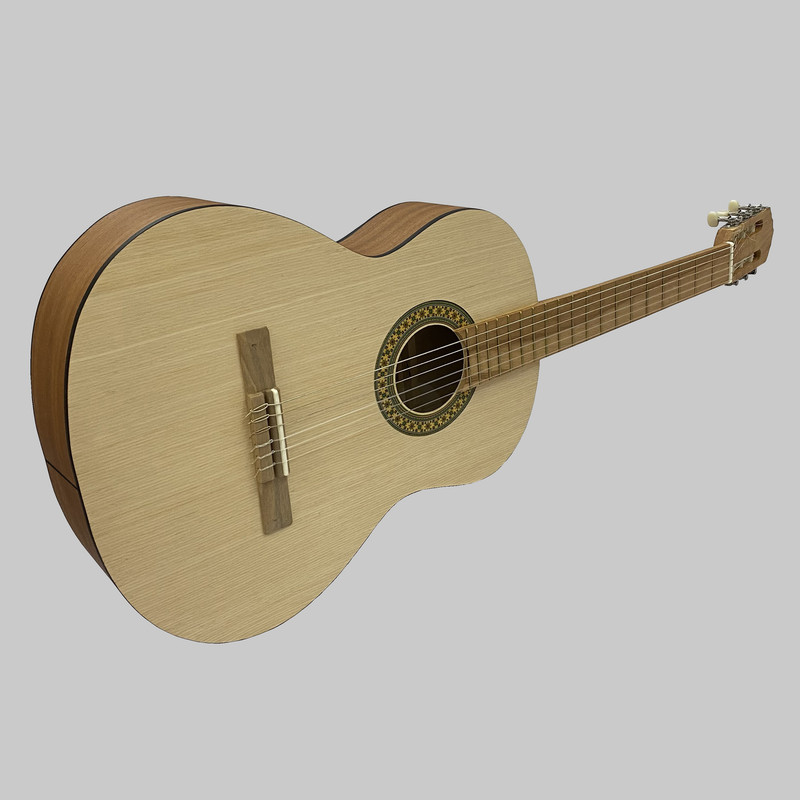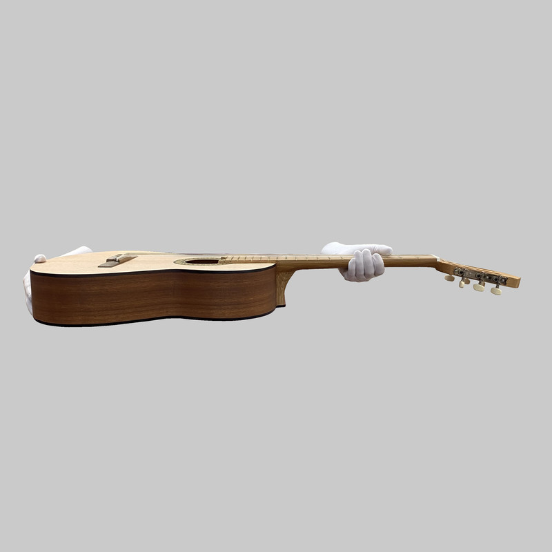 این گیتار میتواند انتخاب درستی باشد برای هر کسی که علاقه مند به این ساز زیباست،و قصد دارد نواختن آن را فرابگیرد.رنگ این ساز مات،و تماماً خود رنگ است،به این منظورکه رنگ و نقشی که میبینید،با رنگ آمیزی ایجاد نشده،و همگی ظاهر زیبای چوب های استفاده شده در این ساز است.سایز کامل استاندارد یا 4/4،آن را برای بزرگ‌سالان،و نوجوانان 9 سال به بالا مناسب می‌سازد.صفحه پشت و کناره ها از جنس چوب ساپلی است،که چوبی با ارزش از جنگل های آفریقا میباشد،و عملاً بهترین چوب برای بک و ساید گیتار است.صفحه‌ی رویی از جنس چوب اسپیروس است،که مرغوب ترین چوب برای ساخت صفحه ی رو به شمار می آید،و صدایی حرفه ای ایجاد میکند.چوب اسپیروس در صفحه رو،باعث ایجاد صدایی گرم،صدا دهی شفاف و درخشان،و پرتاب صدای واضح و دلنشین ساز میشود،گویی به عنوان یک صافی صدا عمل میکند،تا صدایی دلنشین و لذت بخش را به گوش نوازنده برساند.