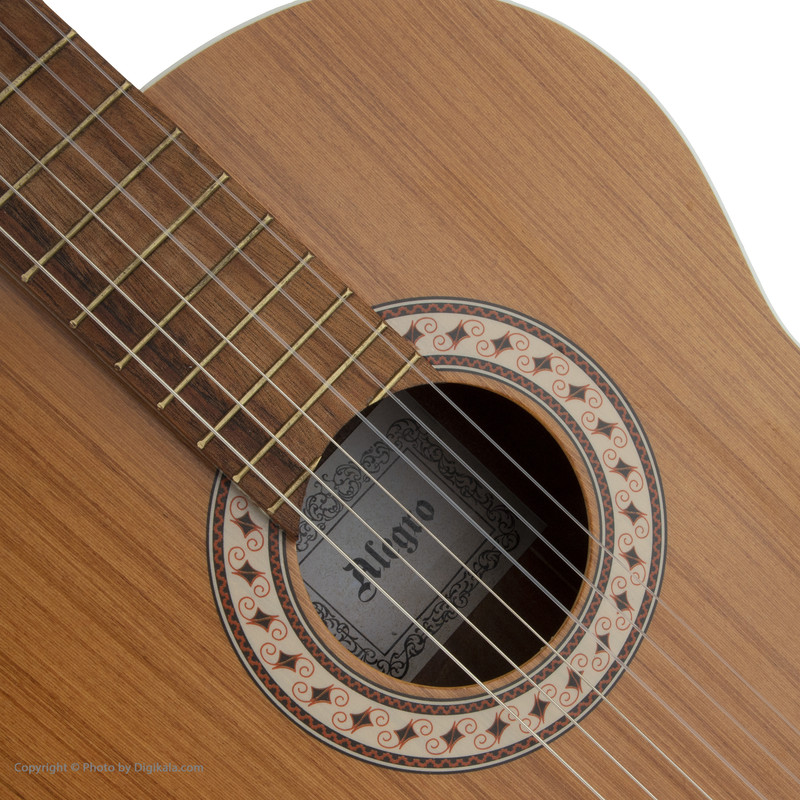گیتار کلاسیک مدل الگرو یکی از محبوب‌ترین سازها در بین جوانان و نوجوانان است. این گیتار به گونه‌ای طراحی شده که ظاهری تمیز و براق داشته و به راحتی می‌توانید آن را در دستان خود بگیرید. صفحه‌ی رویی افرا این محصول صدایی دلنشین و با کیفیت را در محیط ایجاد می‌کند. این گیتار برای افرادی کهمرحله مقدماتی گیتار را شروع کرده بسیار مناسب است. ساختار استاندارد این محصول باعث شده که نوازنده بتواند به راحتی آن را در دستاننوازنده‌ی خود بگیرد. جالب است بدانید که جنس صفحه‌ی انگشت گذاری و سیم‌های این گیتار به ترتیب از راش ونایلون است. جنس لعاب بدنه‌ و ظاهر این گیتار مات و ساده بوده و زیبایی خاصی را موقع ساز زدن از خود جلوه می‌دهد. بهتر است بدانید که ضخامت کاسه و مقیاس این کالا به ترتیب 95 و 660 میلی‌متر است. طول 33 سانتی‌متری این گیتار باعث شده که شما بتوانید موقع استفاده از محصول راحتی زیادی را احساس نمایید.