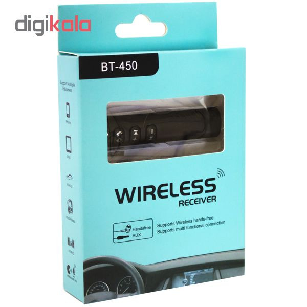 دستگاهی که در تصویر مشاهده میکنید، یک وسیله برای ارتباط دستگاه بلوتوث دار به دستگاه بدون بلوتوث است.توسط دانگل بلوتوث AUX BT-۴۵۰ می توان کلیه دستگاه های بلوتوث دار مانند لپ تاپ، iPhone, iPod, iPad، تبلت، موبایل و … را بدون سیم به وسایلی که دارای ورودی AUX مانند پخش خودرو، اسپیکر، هدفون و … متصل کرد. دانگل بلوتوث AUX پیشرفته BT-۴۵۰ از برندهای معروف و باکیفیت در حوزهی همین محصولات است. افراد بسیاری گوش کردن به موسیقی در حین رانندگی برایشان لذتبخش است، و موزیک مورد نظرشان درون تلفنهمراهشان میباشد، با ورود دانگل بلوتوث AUX پیشرفته BT-۴۵۰ به بازار، این دستگاه توجه بسیاری را به خود جلب کرد. از این طریق به راحتی و بدون وجود کابل وسیم ،کیفیت صدای بسیار عالی، میتوانید موسیقی دلخواهتان را گوش کنید. محدودهی عملکرد دانگل بلوتوث AUX BT-۴۵۰ برابر با ۱۰ متر است. نصب و راهاندازی دانگل به سرعت انجام میشود و برای شروع به کار با آن، نیاز به انجام تنظیمات خاصی نخواهید داشت.این دستگاه دارای کلید ریموت موزیک و +/- صدا و پاسخگویی تماس است.برای وصل نمودن باید دکمه پاور را چند ثانیه نگهداشت تا چراغ چشمک زن قرمز و آبی شود و در موبایل خود انرا جستجو نمایید و وصل شوید.از دیگر مزایای مهم این دستگاه این است که می توان به راحتی در ماشین مکالمه کرد.