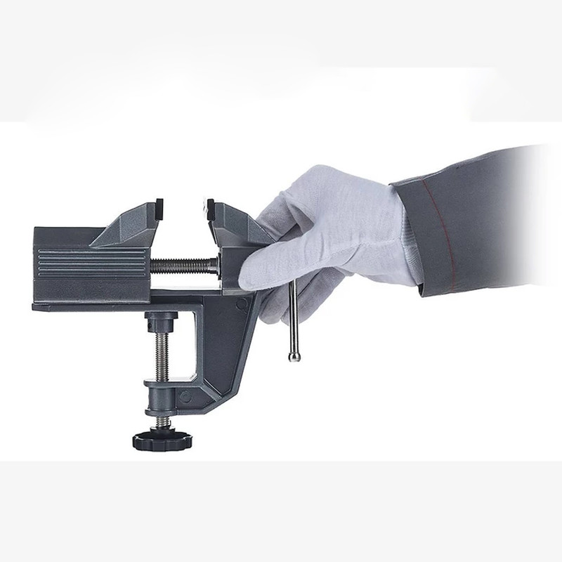 سایر توضیحات | - گیره بغل میزی سیلور - قابل نصب روی لبهی میز با حداکثر ضخامت 50 میلیمتر - کیفیت ساخت مناسب محکم و با دوام ساخته شده از مواد با کیفیت - نصب سریع و آسان مقاومت زیاد در برابر فشار بالا - قابلیت نصب بر روی میز با ضخامت حداکثر 30 میلیمتر - قابلیت باز شدن دهانه تا 65 میلیمتر - ساخته شده از آلیاژ دایکاست - جنس بدنه آلومینیومی - جنس دسته فلز آبکاری شده ضد زنگ - دارای محافظ دهانه از جنس پلاستیک نرم - مجهز به فک و پایه گردان به هر جهت - دارای لوازم جانبی دارای پایه وکیوم قوی جهت اتصال به میز کار - عرض فک دهانه 70 – 80 میلی متر |