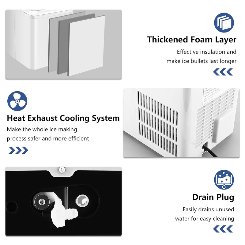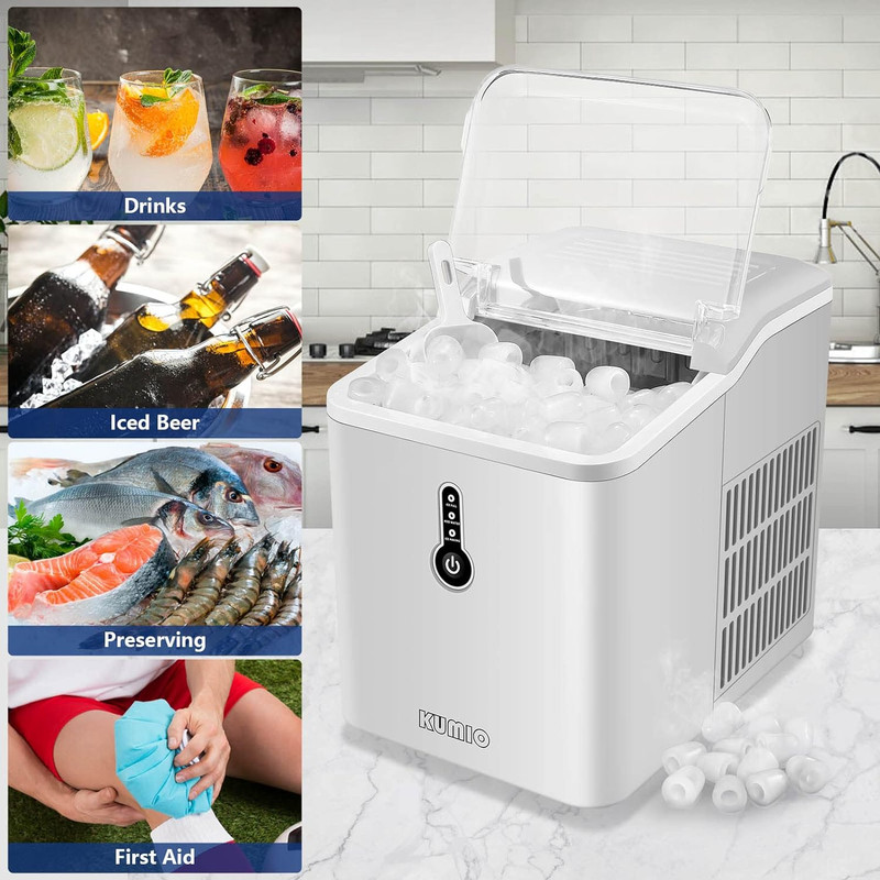 | سایر ویژگیها | یخ ساز کمبو دارای ویژگی های زیر میباشد: یخ سازی سریع: میز یخ ساز KUMIO 9 یخ گلوله ای شکل را تنها در 6-9 دقیقه می سازد، گلوله های یخ نسبتا ضخیم تر هستند و ماندگاری بیشتری دارند. مخزن را با 1.5 لیتر آب پر کنید تا 12 کیلوگرم یخ در 24 ساعت ساخته شود. یخ تازه را در کمترین زمان به شما می دهد ،کنترل هوشمند تک لمسی: کار با آن بسیار آسان است، فقط آب را به یخ ساز اضافه کنید و دکمه را فشار دهید تا شروع شود. هنگامی که آب کافی وجود ندارد یا سبد یخ پر است، چراغ نشانگر روشن می شود. یک درب بزرگ شفاف به شما امکان می دهد پیشرفت یخ سازی را نظارت کنید. همراه با یک سبد یخ قابل جابجایی و قاشق یخ برای انتقال آسان یخ به نوشیدنی یا سطل یخ شما عملکردهای بی صدا و چندگانه: یخ ساز روی میز KUMIO مجهز به کمپرسور با راندمان بالا، نه تنها می تواند به شما در صرفه جویی در انرژی کمک کند، بلکه محیطی آرام را نیز تضمین می کند. ایده آل برای نوشیدنی ها، اسموتی ها، غذا، تازگی و اقدامات کمک های اولیه تمیز کردن آسان و طراحی فشرده: محفظه بادوام ABS صاف است و به راحتی تمیز می شود. مخزن آب مجهز به سیستم تصفیه آب برای لذت بردن از یخ ترد و تمیز است. در پایین یک دهانه و دریچه تخلیه برای تخلیه آسان آب استفاده نشده وجود دارد. توجه: لطفاً قبل از استفاده از دستگاه یخ ساز برای اولین بار، 24 ساعت در حالت عمودی قرار دهید Kumio ICM-1221 می تواند 12 کیلوگرم در روز تولید کند، تنها در 8 دقیقه یک بسته 9 تایی تولید کرد. از آنجایی که یخ بسیار بزرگ و غلیظ است، مقدار کمی از آن بسیار زیاد است. چرخه آب و لایه فوم ضخیم شده، سیستم خنک کننده اگزوز حرارتی و کم صدا، طراحی جمع و جور و قابل حمل، پنل کنترل هوشمند و سیستم تصفیه آب، اسکوپ و سبد یخ قابل جابجایی و راهنمای کاربری میباشد .فوق العاده بی صدا و همه کاره یخ ساز میز دارای کمپرسور قدرتمند، کندانسور با کیفیت بالا و مبرد R600a سازگار با محیط زیست با صدای کم، خنک کننده سریع و مصرف کم است. بهترین کیفیت یخ را در اختیار شما قرار می دهد تا نیازهای مختلف شما را برآورده کند. یخ گلولهای گرد و صاف که به دست شما آسیب نمیزند، ماندگاری بیشتری دارد و به راحتی نمیچسبد، مناسب برای نوشیدنیها، اسموتیها، غذا، تازگی و اقدامات کمکهای اولیه. |