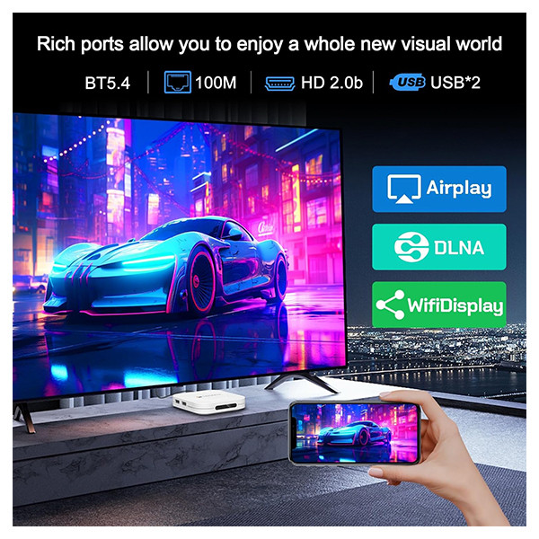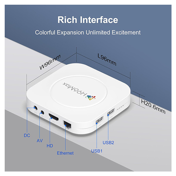 اندروید باکس M1 Plus از برند H96max از سری محصولات جدید این کمپانی می باشد.داشتن اندروید 14 و بلوتوث ورژن 5.4 و Wifi 6 در کنار هم خصوصیت منحصر به فردی به این دستگاه داده است.این دستگاه دارای حافظه 32 گیگ . رم 4 گیگ است.ریموت کنترل به کار رفته از سری ریموت های کنترل بلوتوث نسل جدید می باشد.این محصول دارای CPU مدل Rockchip RK3528 Quad Core ARM-A53 و کارت گرافیک Mali-450 MP2 می باشد.قابلیت ارسال تصویر با کیفیت 8K از خصوصیات دیگر این محصول است.این محصول دارای 2 پورت USB و یک پورت HDMI , Lan .AV ,ac میباشد.طراحی این محصول بسیار زیبا و جذاب است.این دستگاه دارای بدنهای کاملاً پلاستیکی است که در رنگ سفید ارائه میشود. ابعاد بسیار جمع و جور ۱۰ در ۱۰ در ۲ سانتیمتری و وزن حدود ۲۳۰ گرمی، آن را به محصولی بسیار سبک و کمحجم تبدیل کرده که به راحتی در فضای کوچک کنار تلویزیون قرار میگیرد.