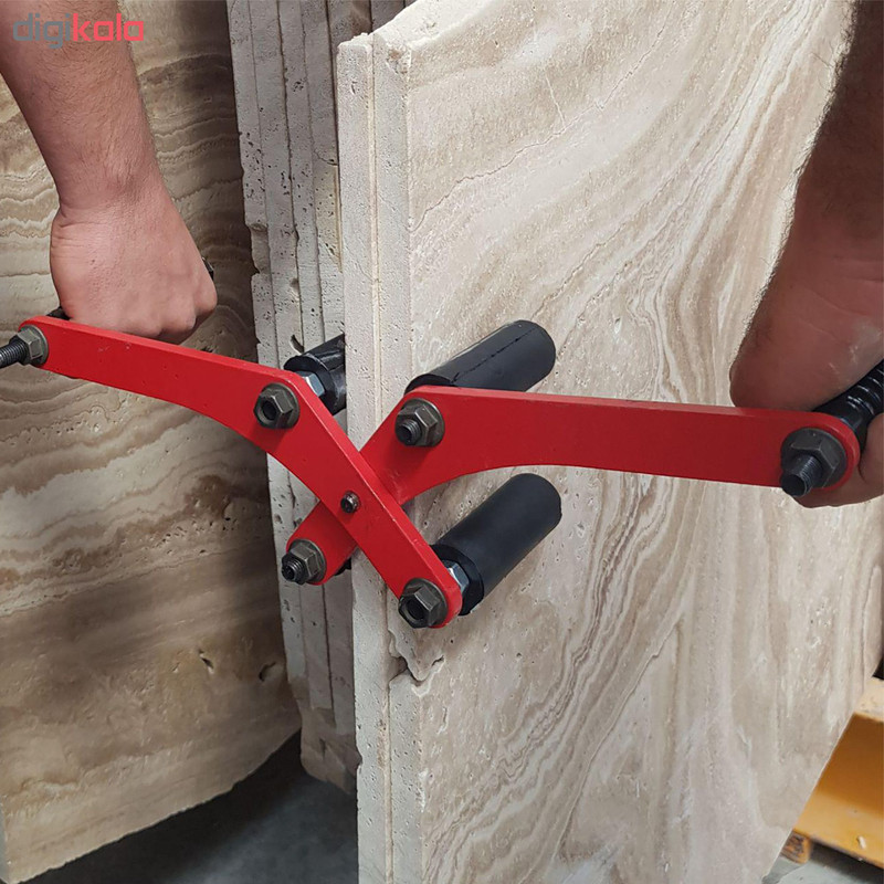این ابزار یکی از کاربردی ترین ابزارها برای جا به جایی اسلب های سنگی و چوبی و فلزی سنگین است. ساختار اسلب گیر ساده است اما این توانایی را به حمل کننده های اسلب مدهد که به راحتی ورق های سنگین با حداکثر ضخامت 60میلی متر را جا به جا کنند. چهار لقمه لاستیکی با مغزی فولادی از دو طرف قطعات سنگی را در بر می گیرند. لاستیکی بودن این لقمه ها مانع از ایجاد اسیب به اسلب میشود اساس کار اسلب گیر به صورت جفت است و همزمان چهار اپراتور باید برای حمل همکاری کنند