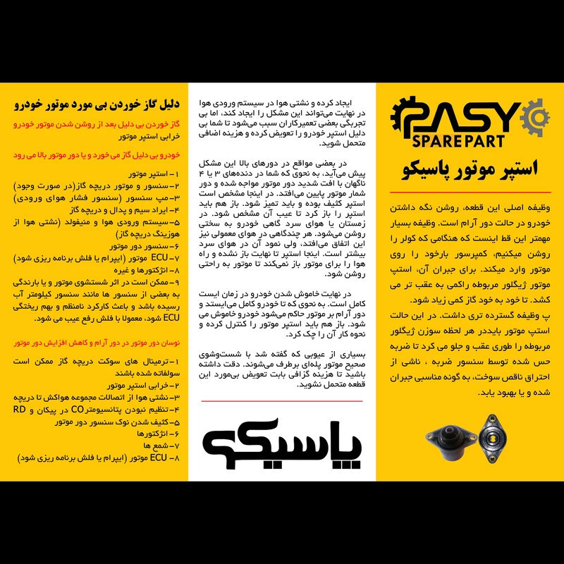 باتوجه به مشکلی که در خودرو های ساخت داخل وجود دارد دود و گاز های چرب حاصل از احتراق موتور وارد منیفولد هوای موتور شده و مجددا توسط موتور مکش می شود . این مشکل باعث رسوب چربی و دوده روی اجزای دریچه هوا شده که یکی از اصلی ترین عوامل مخرب قطعات روی دریچه هوا می باشد . در استپرموتور پاسیکو ، بدنه به گونه ایی طراحی شده است که بخش جلویی به صورت کامل بسته شده است و مانع ورود دوده ، بخار روغن و بخار بنزین برگشتی از موتور خودرو به داخل استپرموتور می شود .