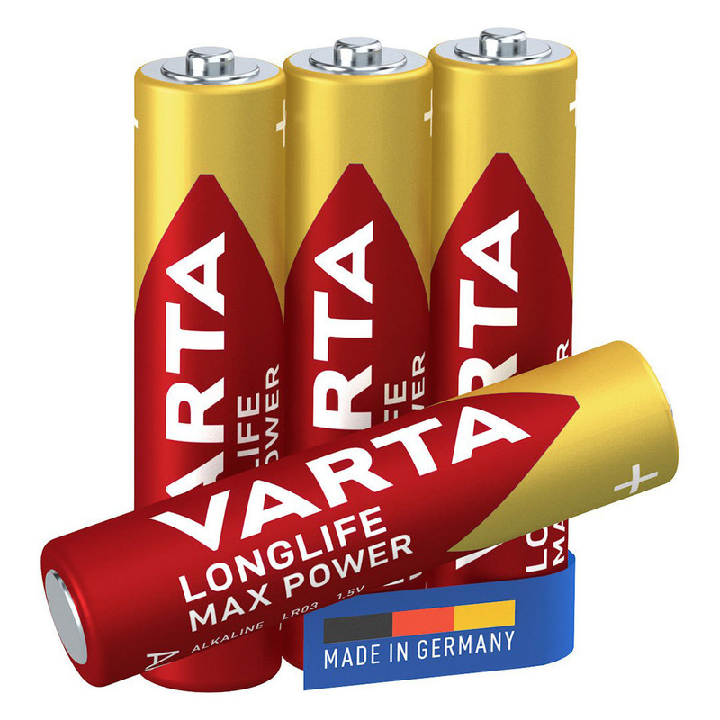 باتری نیم قلمی آلکالاین وارتا مدل Longlife Max Power در بسته بندی 4 عددی با ولتاژ 1.5 ولتی ارائه می شوند. این باتری ساخت کشور آلمان و از سری باتری های پرقدرت و ماندگار شرکت وارتا و مناسب استفاده در تجهیزات الکترونیکی با نیاز انرژی بالا است. کاربرد این باتری نیم قلم لانگ لایف مکس پاور وارتا به عنوان باتری دستگاه فشار خون، قند خون، Xbox و … دوام طولانی و کارآیی بالایی خواهد داشت.
