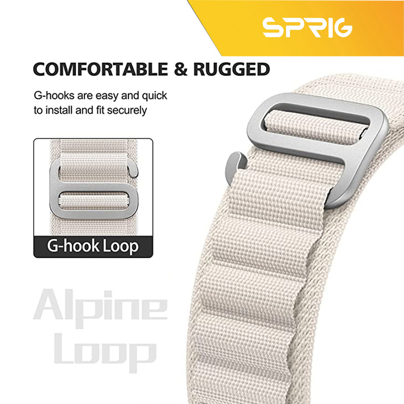 بند اسپریگ مدل Loop Alpine سبک وزن، بادوام و قابل تنظیم، به طور یکپارچه از دو لایه پارچه، بدون دوخت بافته شده می باشد. از قلابهای تیتانیومی مقاوم در برابر خوردگی و بدون زنگ زدگی برای اتصال ایمن استفاده می کند. نوار ساخته شده از مواد نایلونی سازگار با پوست، نوارهای نایلونی کششی بافته شده، قابل تنفس، مقاوم در برابر عرق و مقاوم در برابر آب میباشد. همچنین با قلاب تیتانیوم G، سبک وزن میباشد. مناسب برای کوهنوردی، پیاده روی، دویدن، صخره نوردی، دویدن، دوچرخه سواری و سایر ورزش های ماجراجویی در فضای باز میباشد. بندهای طراحی شده برای ساعت اپل دارای یک هوک فلزی قابل تنظیم برای انعطاف پذیری و ایمن کردن بند شماست.