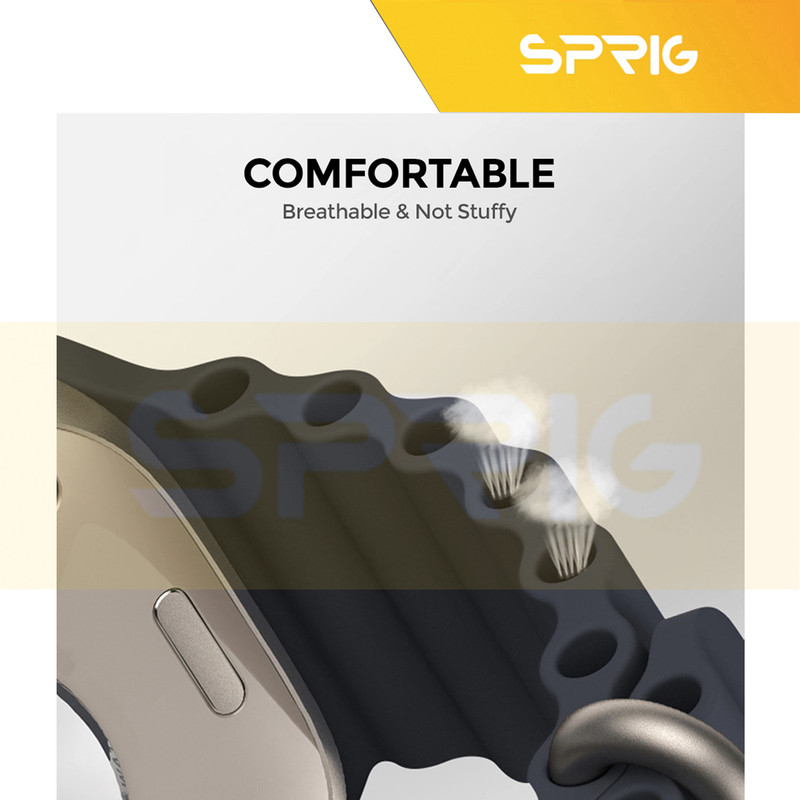 بند اسپریگ مدل Ocean سبک وزن، بادوام و قابل تنظیم، به طور یکپارچه از دو لایه پارچه، بدون دوخت بافته شده می باشد. از قلابهای تیتانیومی مقاوم در برابر خوردگی و بدون زنگ زدگی برای اتصال ایمن استفاده می کند. نوار ساخته شده از جنس سیلیکون سازگار با پوست، قابل تنفس، مقاوم در برابر عرق و مقاوم در برابر آب میباشد. همچنین با قلاب تیتانیوم ، سبک وزن میباشد. مناسب برای کوهنوردی، پیاده روی، دویدن، صخره نوردی، دویدن، دوچرخه سواری و سایر ورزش های ماجراجویی در فضای باز میباشد. بندهای طراحی شده برای ساعت اپل دارای یک هوک فلزی قابل تنظیم برای انعطاف پذیری و ایمن کردن بند شماست.