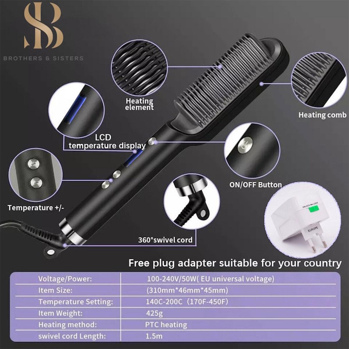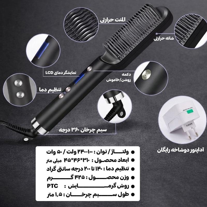 برس حرارتی حالت دهنده مو مدل HQT-909B طول سیم : ۱.۵ متر نوع نمایشگر : LED جنس صفحه : سرامیک گسترهی دما : بیش از ۲۴۰ درجه سانتیگراد قابلیت تنظیم دمای دلخواه دارای سیستم ایمنی قفل دما رنگبندی : سفید ، مشکی ، سبز ، قرمز ( ارسال به صورت رندم) برس حرارتی مخصوص حالت دهی مو یک ابزار جدید و کاربردی در زمینه آرایش و پیرایش موهای سر می باشد که کاربرد فوق العاده ای در حالت دادن انواع موهای صاف،فر،خشک و … داشته و می تواند یک دستیار حرفه ای برای آرایشگر ها نیز باشد. اگر دوست دارید بدون دردسر و بدون نگرانی از خراب شدن موهایتان آنها را در حالتی صاف و درخشان و زیبا آرایش کنید نیازی به اتوی مو،سشوار و … نخواهید داشت و فقط با استفاده از همین برس حرارتی بهترین حالت دلخواهتان را براحتی آب خوردن ایجاد کنید. این برس حرارتی یک برس در طرح و مدل همان برس های معمولی می باشد اما صفحه های باریک سرامیکی دارد که با استفاده از نیروی برق شهری می تواند حرارت تولید کرده و موهای شما در حالت دلخواهتان درست کند، میزان دما و حرارت این برس قابلیت تنظیم داشته و به کمک صفحه نمایشگر ال ای دی این محصول می توانید براحتی آن را در دما و حرارت مناسب تنظیم کرده و استفاده کنید و لازم نیست نگران ایمنی و یا سوختن و خراب شدن موهایتان باشید زیرا این برس کاملا ایمن طراحی شده و دکمه قفل دما نیز دارد و براحتی با استفاده از یک دکمه پاور نیز در کسری از ثانیه امکان خاموش و یا روشن شدن نیز دارد.