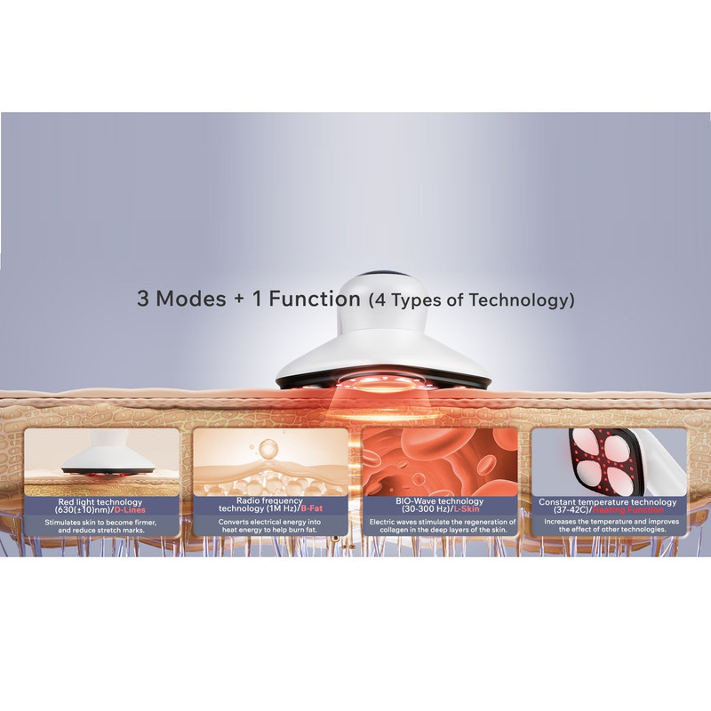 3 حالت و عملکرد گرمایش : دستگاه مجسمه سازی بدن دارای 3 حالت کار است (D-Lines: کاهش علائم کشش، B-Fat: چربی سوزی، L-Skin: سفت کننده پوست). در عین حال، این 3 حالت عملکرد گرمایشی نیز دارند تا تجربه کاری راحت را ارائه دهند.