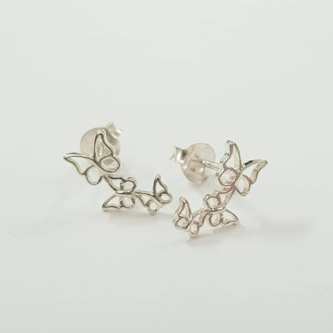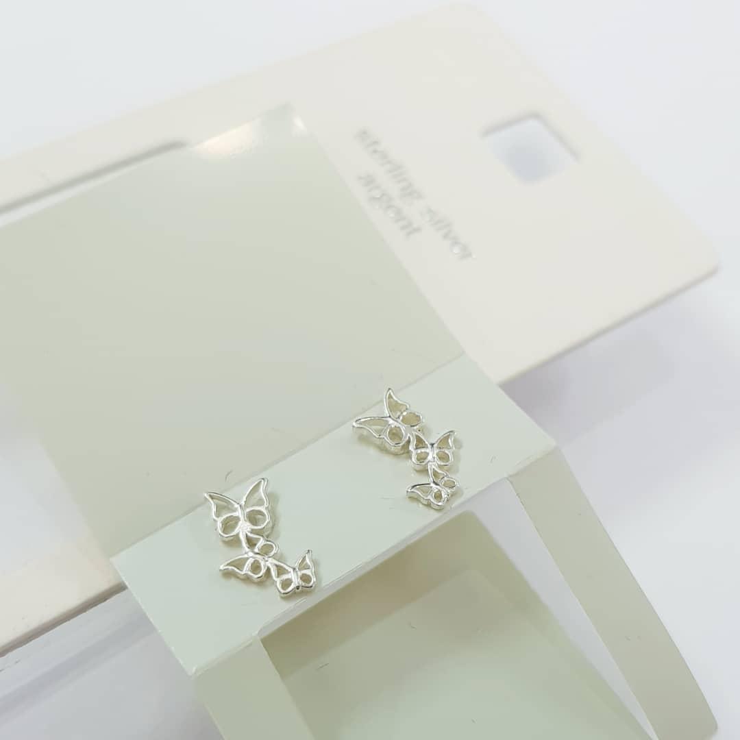گوشواره گلگوش نقره عیار ۹۲۵ طرح پروانه ، بسیار درخشان و زیبا ، ساخت کشور تایلند ، شناسنامه و بارکد دار ، عیار حک شده روی گوشواره ضد حساسیت برند Iam تحت لیسانس آمریکا