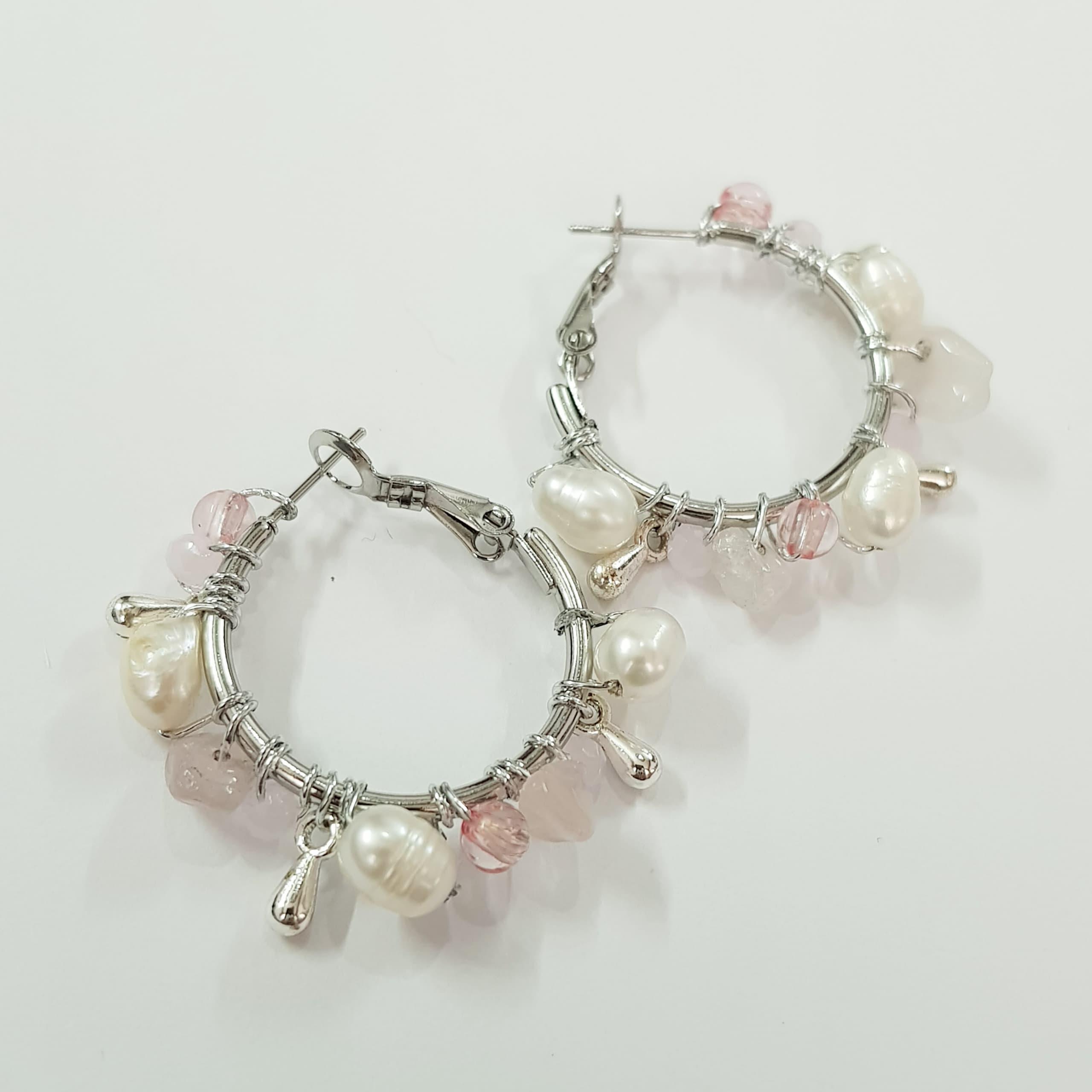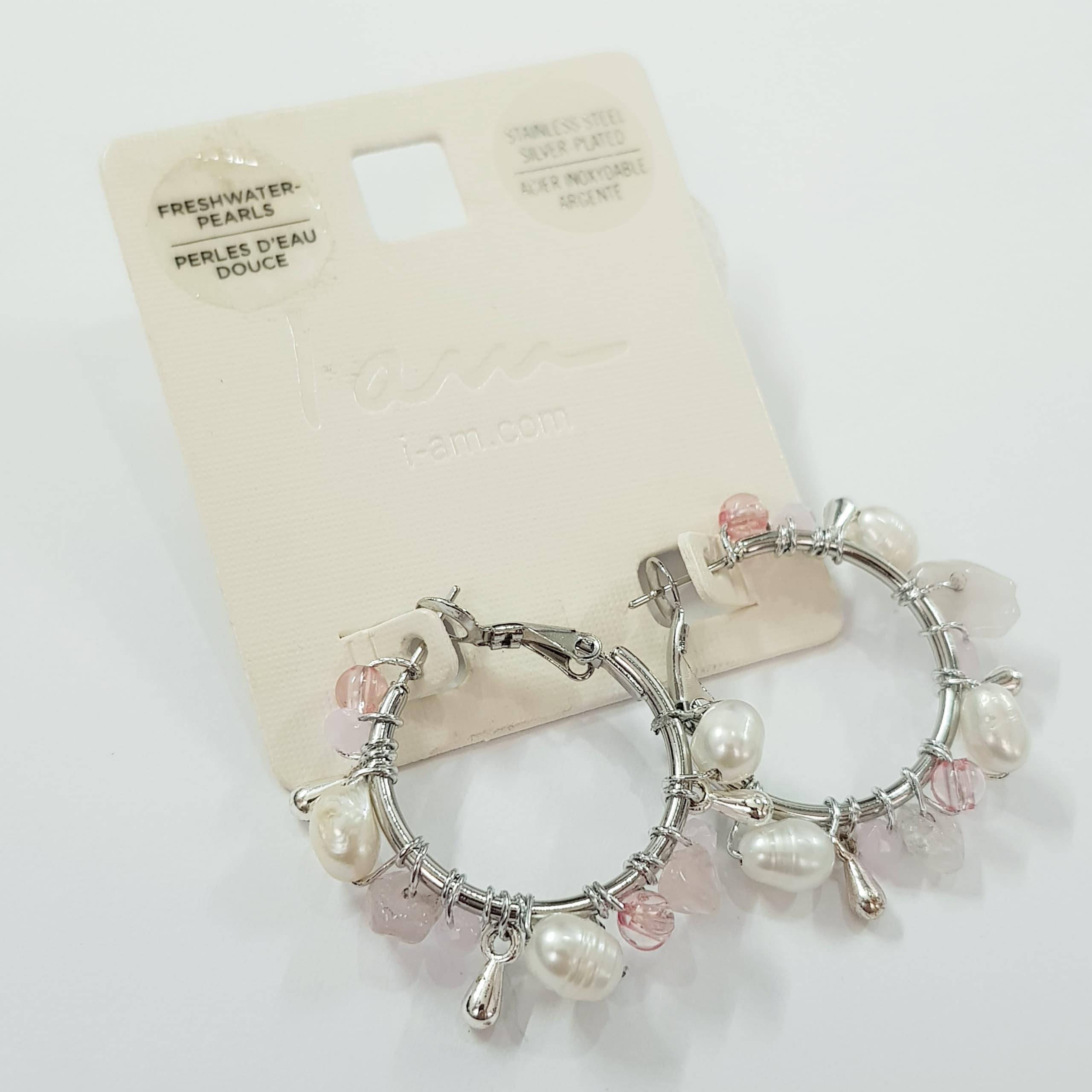 گوشواره قفلی استیل کار شده با سنگ کوارتز اصل و مروارید آب شیرین اصل ، مناسب استفاده دائم روزانه ، کار فوق العاده زیبا رنگ ثابت و ضد حساسیت برند iam تحت لیسانس آلمان