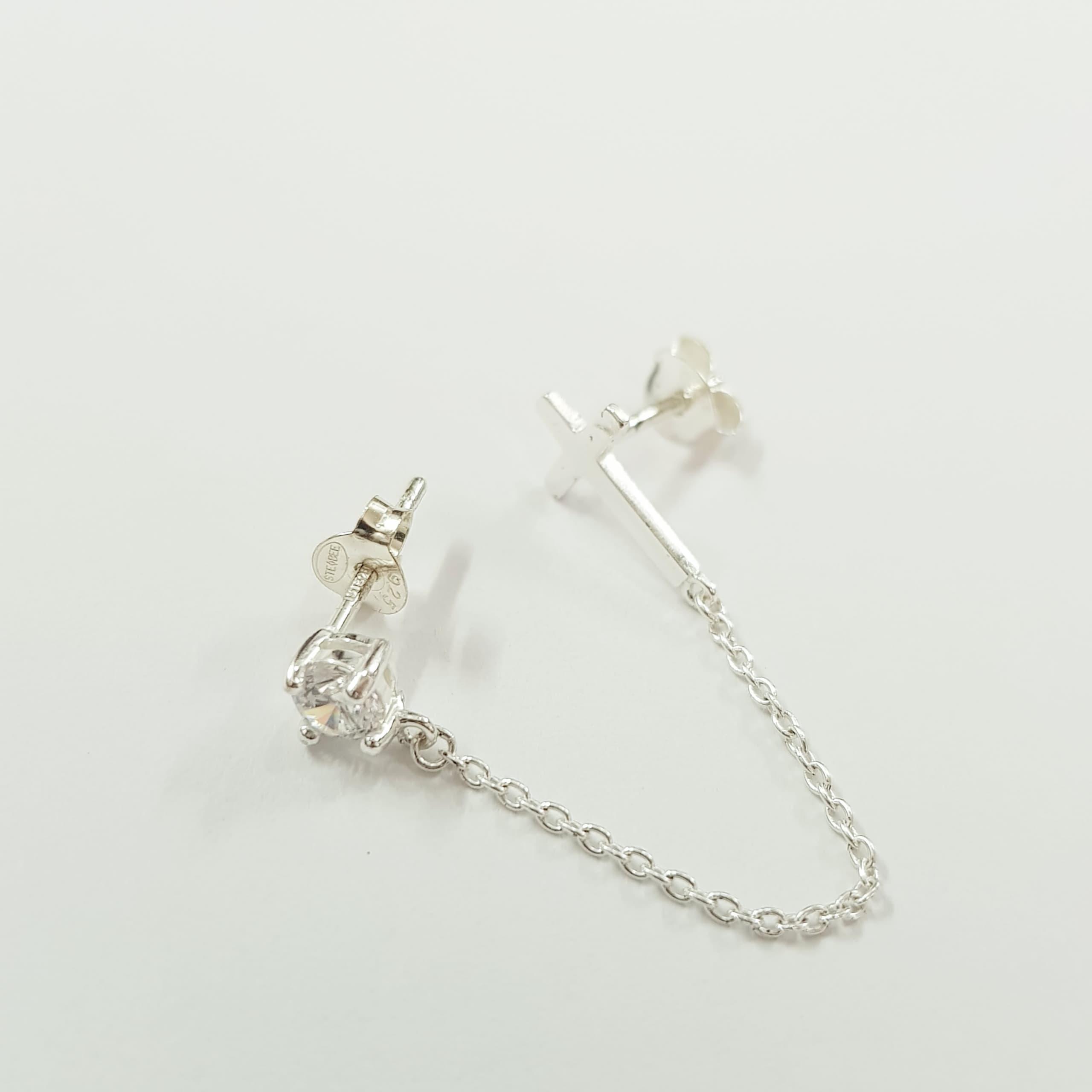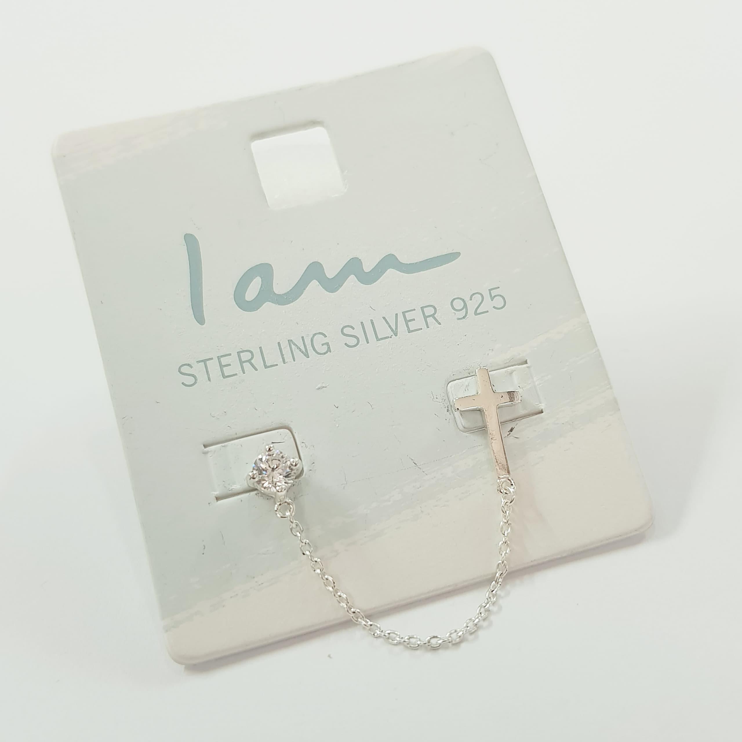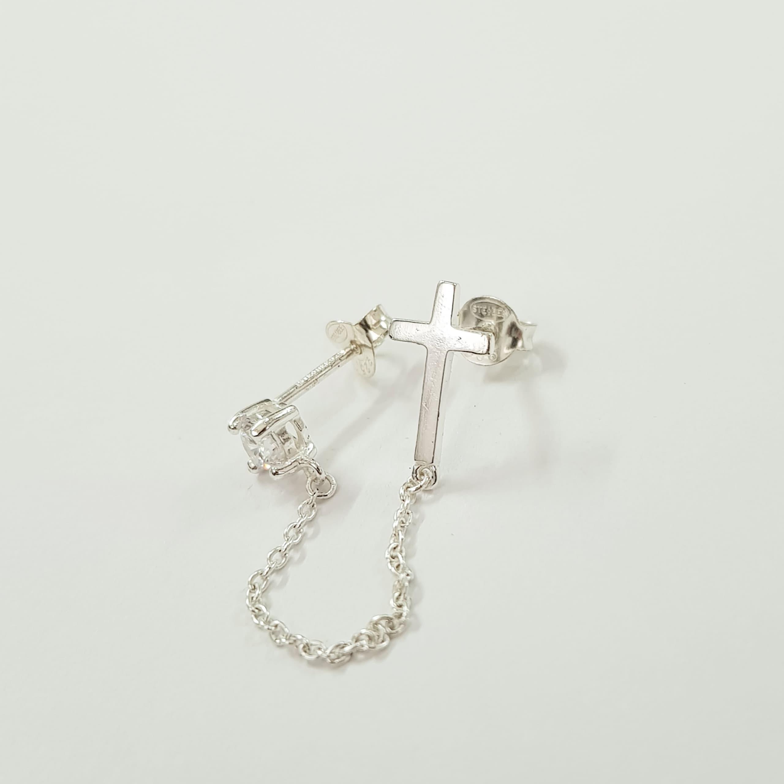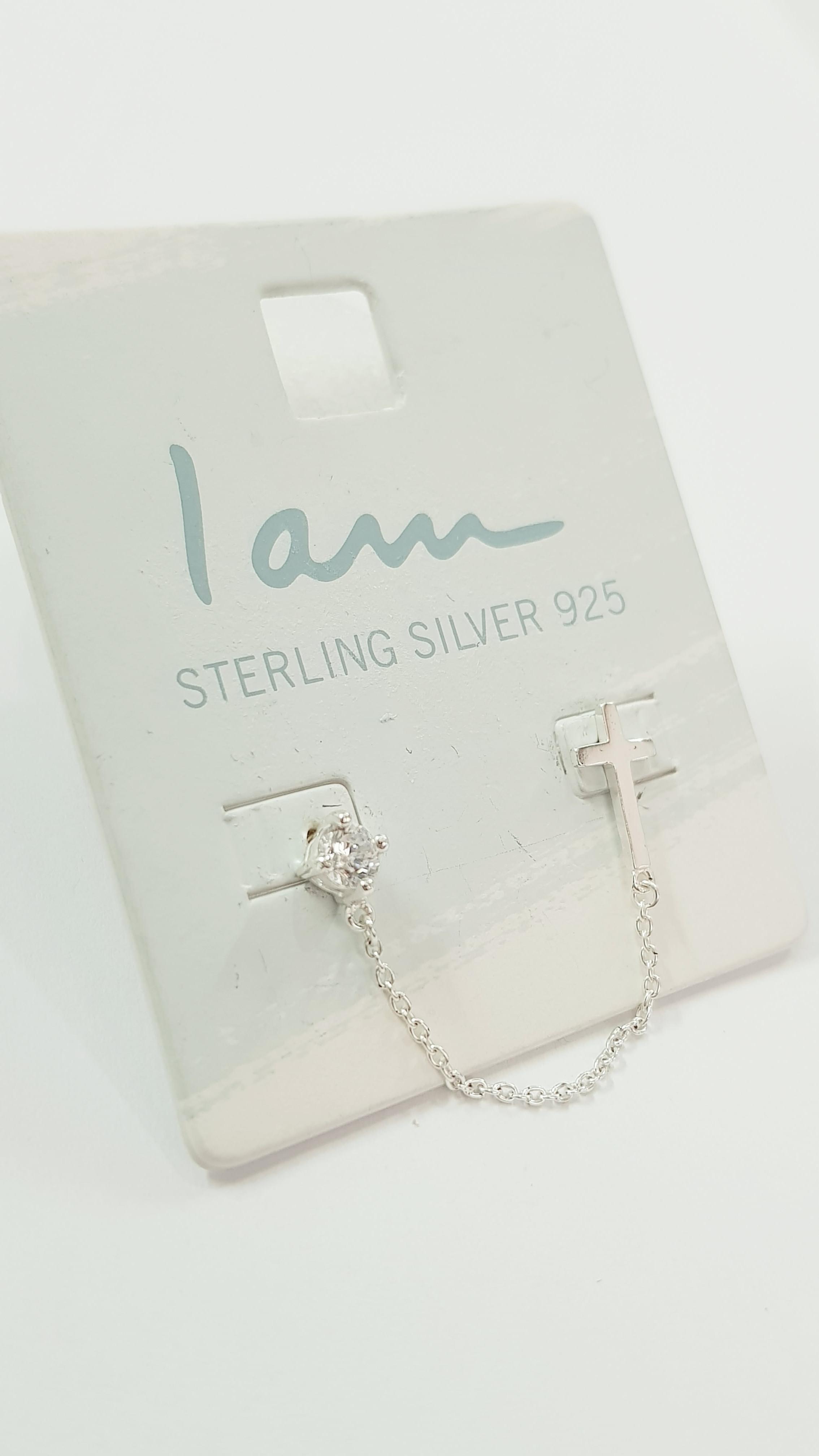 گوشواره نقره عیار ۹۲۵ طرح صلیب ، زنجیردار ، بسیار درخشان و زیبا ، ساخت کشور تایلند ، شناسنامه و بارکد دار ، عیار حک شده روی گوشواره ضد حساسیت برند Iam تحت لیسانس آمریکا