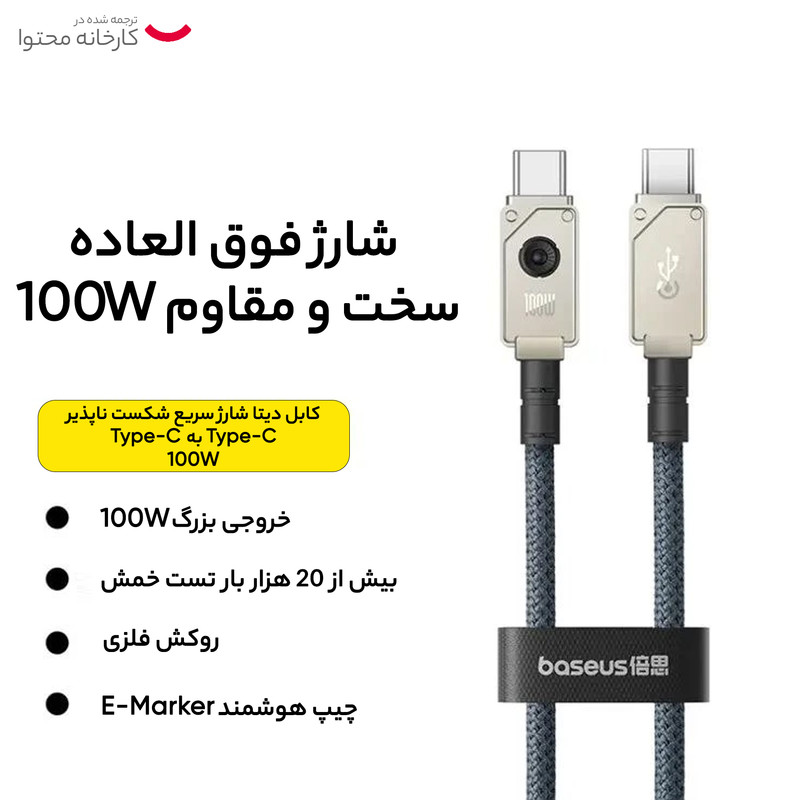 عمده مشکل به وجود آمده برای کابل پارگی روکش این گجت است که باعث نشت یا قطع جریان و بلااستفاده شدن آن می گردد. اما کابل تایپ سی بیسوس Unbreakable Series 100W مدل CB000051 از مواد خاصی با عنوان Aramid Braided Fiber که در صنایع نظامی و هوافضا مورد استفاده است ساخته شده است و این باعث می شود با نمونه خاصی از کابل با مقاومت کششی و حرارتی بسیار قابل توجه طرف باشید.