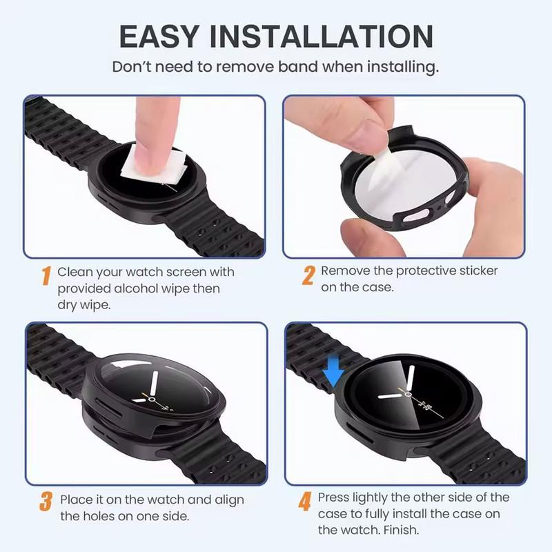 کاور آکوآرا ترکیبی نوآورانه از محافظت و زیبایی برای ساعت شماست. این محصول که از ترکیب پلاستیک مقاوم (برای گارد) و شیشه گلس سخت (برای محافظ صفحه نمایش) ساخته شده است، به طور کامل دور تا دور ساعت شما را پوشش میدهد و از آن در برابر ضربهها، خراشها و سایشهای روزمره محافظت میکند. گارد گلس نه تنها از بدنه و صفحه نمایش ساعت شما در برابر آسیبهای فیزیکی محافظت میکند، بلکه اغلب با طراحی ظریف و دقیق خود، به زیبایی ساعت شما میافزاید و ظاهری شیک و مدرن به آن میبخشد. نصب آسان و دسترسی کامل به دکمهها و سنسورها از دیگر ویژگیهای کاربردی این محافظ است که اطمینان میدهد بدون هیچ مشکلی میتوانید از تمام قابلیتهای ساعت هوشمند خود لذت ببرید.