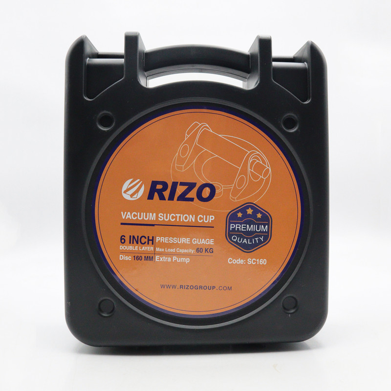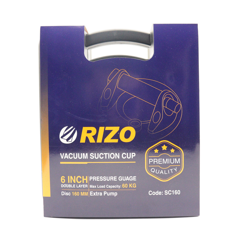 | اقلام همراه | - قاپک شیشه تک قلو ریزو مدل پمپی گیج دار - سایز : قطر 16 سانتی متر ( 6 اینچ ) - ابزارهای پر کاربرد صنعتی و با کیفیت ساخت برند RIZO - قاپک حمل و جابجایی وسایل تخت بزرگ و سنگین مناسب شیشه، تخته سنگ و تمام اجسام با سطح صاف - تیپ پمپی برای مکش سریع و بدون اتلاف وقت - دارای خلاص کن و هشدار فشار بیش از حد خلا مجهز به گیج فشار سنج با نمایشگر عقربه ای دقیق - ماکزیمم تحمل وزن اجسام تا 60 کیلوگرم - دسته روکش شده رابری ضد تعریق و ضد لغزش - جنس بدنه از پلاستیک و لاستیک کاملا مرغوب - کیفیت بالا |