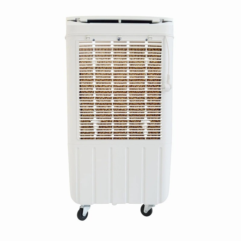 بدنه از پلاستیک مقاوم و ضدپوسیدگی ساخته شده تا دوام بالایی در شرایط مرطوب داشته باشد. درون دستگاه از پدهای سلولزی قابل شستوشو استفاده شده که بهواسطه ساختار لانهزنبوری خود، توزیع یکنواخت رطوبت و افزایش بازده خنکی تا ۶۵ درصد را تضمین میکنند. برای افزایش شدت سرمایش، یک جایخی مخصوص بطری یا کیسه یخ در مخزن تعبیه شده است تا هوای خروجی خنکتر و مطبوعتر شود.