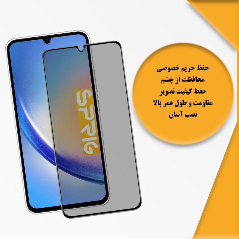 محافظ صفحه نمایش حریم شخصی اسپریگ با فناوری ضد جاسوسی، برای حفظ حریم خصوصی کاربر طراحی شده است. این گلس از زوایای کناری تصویر را تاریک کرده و تنها در زاویه مستقیم نمایش واضحی دارد. ساخته شده از شیشه حرارتدیده با درجه سختی 9H که در برابر خط و خش، ضربه و افتادن مقاوم است. دارای پوشش اولئوفوبیک که اثر انگشت، چربی و لکه را کاهش میدهد. انتقال نور بالا و حفظ کیفیت نمایشگر بدون کاهش حساسیت لمسی، نصب آسان با فناوری جذب خودکار و بدون ایجاد حباب، از دیگر مزایای این گلس اند.