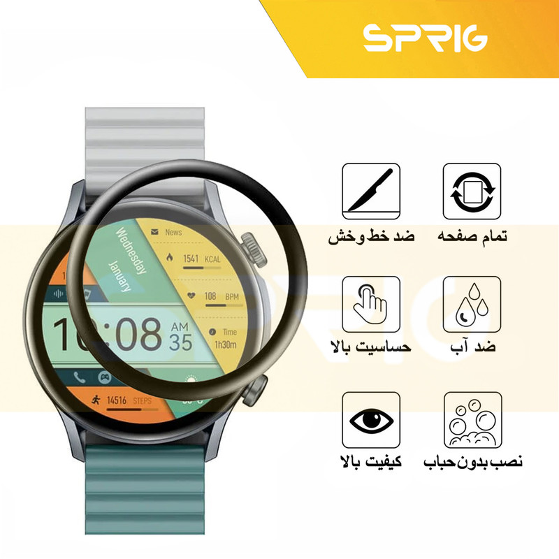 محافظ صفحه نمایش نانو اسپریگ مدل Pmma-SPG دارای مزایایی مانند ضد خط و خش ، نیفتادن حباب روی صفحه نمایش ، ضد باکتری و جرم و نامرئی بودن آن است. این نوع محافظ صفحه ضخامت بسیار کمی نسبت به گلس های شیشه ای دارد بنابراین ظاهر ساعت شما را چندان تغییر نمی دهد. این نوع گلس به دلیل انعطاف پذیری بیشتر ، راحت تر روی گوشی هایی که لبه های منحنی دارند قرار می گیرند ولی نصب این نوع محافظ صفحه نیاز به دقت دارد.