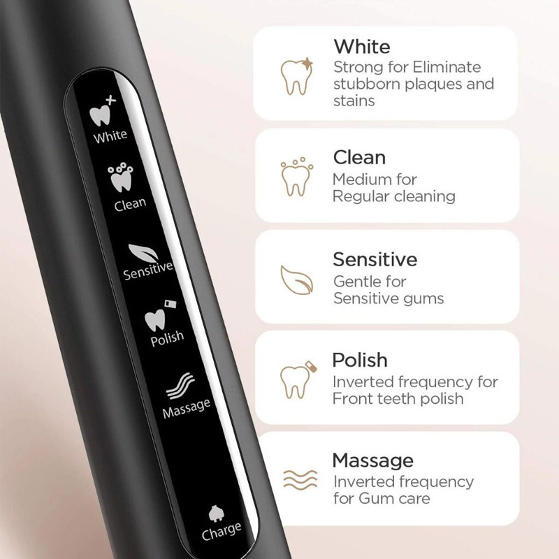 5 حالت تمیز کردن با کارایی بالا برای تناسب با شرایط مختلف دندان و لثه. بسیار سبک وزن با وزن 55 گرم، کمتر از نصف وزن بسیاری از مسواک های برقی دیگر.