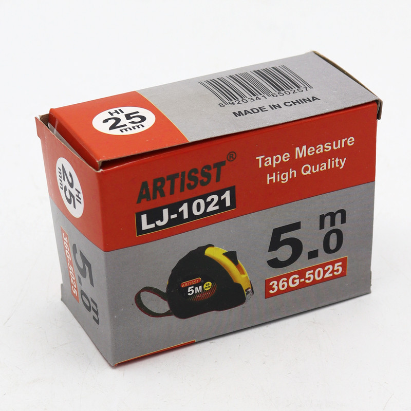 | سایر توضیحات | - متر 5 متری آرتیست - نوک متر از جنس فولاد ضدزنگ برای محافظت از تیغه - سری متر دارای آهنربا قوی و چسبنده - بدنه ضد ضربه محکم از جنس پلاستیک ABS - قفل محکم - دارای بند برای آویز |