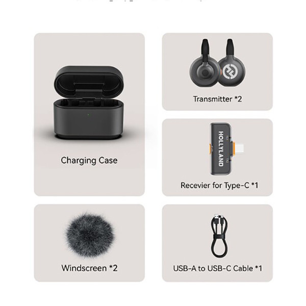 | اقلام همراه | جعبه شارژ 2عدد بادگیر گیرنده usb-c 2عدد فرستنده کابل usb به usb-c |