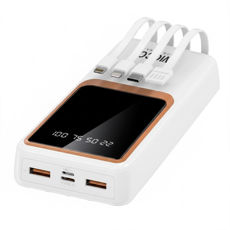 این پاوربانک با کیفیت ترین پاوربانک مجهز به انواع پروتکل های شارژ ایمن و سریع است که دارای 4 کابل خروجی و 2 درگاه usb یک درگاه تایپ سی و یک درگاه میکرو است که می توانید .خروجی های پاوربانک 30 هزار 22.5W است که از استانداردهای ایمن و فناوری بهره میبرند . این پاور بانک مجهز به یک چیپست هوشمند میباشد که قادر است از باتری گوشی شما در برابر نوسانات و اتصالات کوتاه محافظت کند به گونهای که شدت جریان خروجی از پاوربانک را با شدت جریان ورودی گوشی شما یکسان میکند تا هیچ گونه آسیبی به باتری گوشی شما وارد نشود و باعث افزایش طول عمر باتری نیز بشود.. این پاور درای تمامی پروتکل های ایمنی روز دنیا است و تاییدیه اتحادیه اروپا را نیز دارد. این پاوربانک در برابر اتش و ضربه نیز مقاوم است
