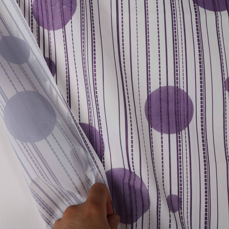 پرده حمام یکی از عناصر دکوراتیو است که باید پوشش مناسبی را ایجاد کند. برای سرویس بهداشتی و حمام از والان و تور استفاده نمی شود. برخلاف پرده اتاق پذیرایی انواع طرح های سنتی و کلاسیک در دستشویی و حمام جایی ندارند. فضای سرویس های بهداشتی، حمام و دستشویی با آب و رطوبت و نم در ارتباط است. از طرفی شوینده ها و سفید کننده ها در حمام استفاده می شوند. وجود شوینده ها و رطوبت را دست کم نگیرید. مواد ضد آب در تهیه و ساخت پرده های حمام مناسب تر هستند. بهترین جنس برای پرده حمام پارچه های پلاستیکی از جنس پلی استر هستند که آب و رطوبت را به خود جذب نمیکنند و تغییر رنگ نمیدهند. دوام این نوع پارچه ها بسیار بالاست وحتی میتوان آن را با ماشین لباسشویی و یا وایتکس شستشو داد. پرده حمام پیسو از جنس 100 درصد پلی استر ساخته شده و از حلقه های پلاستیکی برای آویز شدن استفاده شده است.جنس پارچه از مواد درجه یک کاملا بدون بو تهیه شده است.