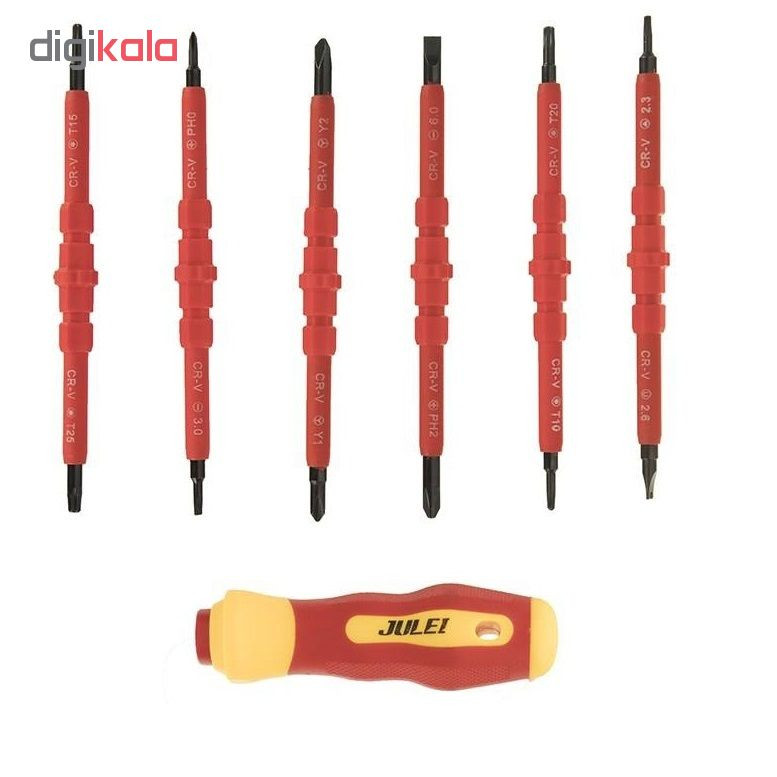 | توضیحات تعداد | - دارای 6 سری دو طرفه - دارای دو سری دوسو در سایزهای 3 و 6 میلیمتر، دو سری چهارسو در سایزهای PH0 و PH2، یک سری U شکل در سایز 2.6، یک سری سه پر در سایز 2.3، چهار سری ستارهایث در سایزهای T10، T15، T20، T25 و دو سری Y شکل در سایزهای Y1 و Y2 |