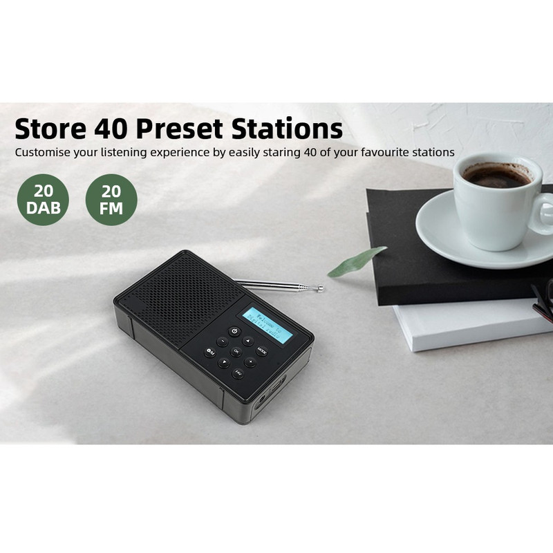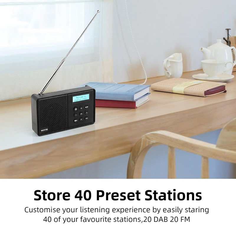 | امکانات و قابلیتها | رادیو دیجیتال WOVTE DAB+ - قابل حمل، قابل شارژ و دارای منبع تغذیه بلوتوث، 40 ایستگاه از پیش تنظیم شده، صفحه نمایش LED، ساعت زنگ دار، تایمر خواب و سوکت هدفون فناوری تیونر : رادیو پخش دیجیتال، رادیو پخش دیجیتال+، رادیو FM ، فناوری اتصال: بلوتوث، یو اس بی ، برق شهری یا شارژ با باتری از طریق USB از طریق کابل میکرو USB موجود در بستهبندی، یا با استفاده از باتری داخلی ۱۲۰۰ میلیآمپر ساعتی با کارایی بالا که شارژ کامل آن امکان پخش مداوم ۱۰ ساعت را فراهم میکند، تغذیه میشود. این محصول برای استفاده در آشپزخانه، دفتر کار و بسیاری از مکانهای دیگر ایدهآل است. رادیو دیجیتال DAB/DAB+ و FM :رادیو DAB ما دارای حالتهای DAB/DAB+/FM است، کیفیت صدای واضح و شفافی دارد و به طور خودکار تمام ایستگاههای رادیویی موجود شما را جستجو میکند و آنها را روی صفحه نمایش بزرگ LED نمایش میدهد. علاوه بر این، میتوانید از بلوتوث برای تبدیل رادیوی خود به بلندگو و پخش موسیقی در حال حرکت استفاده کنید. رادیو با برق شهری یا باتری:رادیوی قابل حمل ما از طریق کابل میکرو USB موجود در بستهبندی، یا با استفاده از باتری داخلی ۲۲۰۰ میلیآمپر ساعتی با کارایی بالا که شارژ کامل آن امکان پخش مداوم ۱۲ ساعت را فراهم میکند، تغذیه میشود. مناسب برای استفاده در آشپزخانه، دفتر و بسیاری از مکانهای دیگر. ذخیره ۴۰ ایستگاه از پیش تعیینشده: شما میتوانید به راحتی تا ۴۰ ایستگاه را ذخیره کنید تا بتوانید فوراً ایستگاههای مورد علاقه خود، ۲۰ ایستگاه DAB و ۲۰ ایستگاه FM را فراخوانی کنید. استفاده از آن ساده است، وقتی برای اولین بار آن را روشن میکنید، به طور خودکار تمام ایستگاههای رادیویی موجود را تنظیم میکند. سپس میتوانید موارد دلخواه خود را مرور کرده و ذخیره کنید. پر از امکانات : از ایستگاههای مورد علاقه خود مستقیماً از رادیوی داب ما با بلندگوی داخلی قدرتمند آن لذت ببرید، یا از هدفون از طریق سوکت هدفون 3.5 میلیمتری برای گوش دادن شخصی استفاده کنید. همچنین دارای ساعت زنگدار، تایمر خواب راحت است که به شما یادآوری میکند از خواب بیدار شوید و هنگام خواب رادیو را خاموش میکند. |