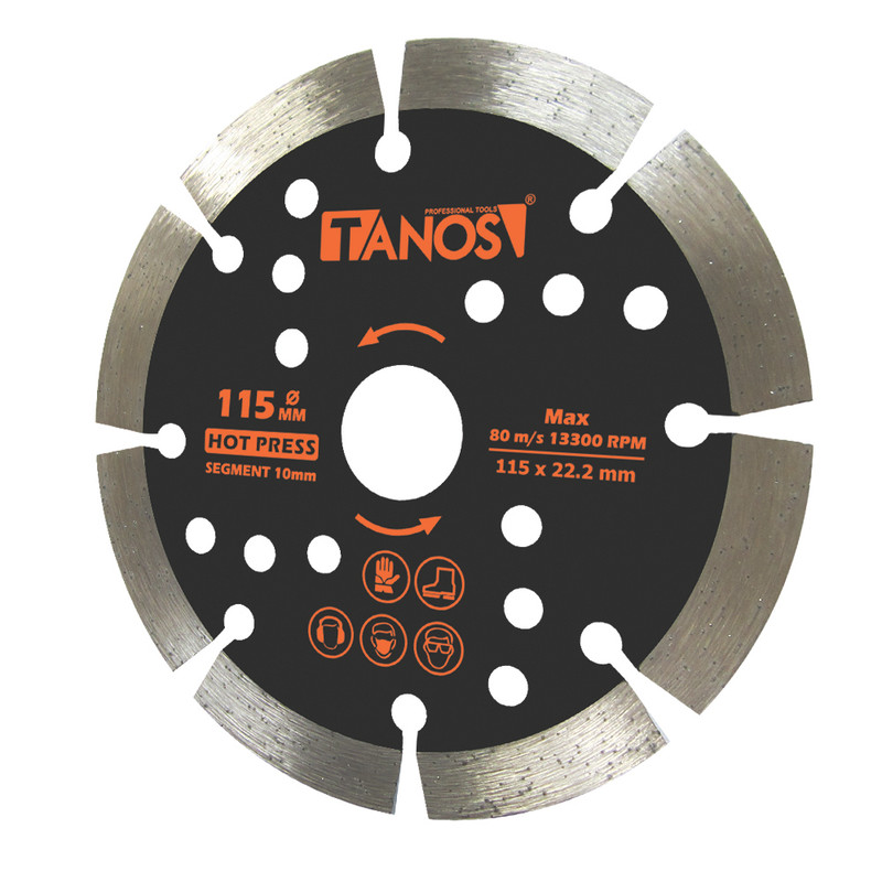 تیغ گرانیت بر یک صفحه فولادی بسیار مقاوم است که روی دستگاههای برش مخصوص بسته شده و عملیات برش را انجام میدهد. از این تیغه گرانیت بر برای برش سنگهای ساختمانی از جمله سنگ گرانیت و سنگ نما استفاده میکنند. صفحه گرانیت بر تانوس مدل DS-115 با تکنولوژی هات پرس ساخته شده و دارای تیغه های الماسه می باشد. سایز صفحه 115 میلی متر و اندازه سگمنت آن 10 میلی متر است. جهت کاهش نویز و سر و صدا حفره هایی روی این صفحه تعبیه شده است و هنگام کار طولانی مدت مقاومت بالایی دارد.