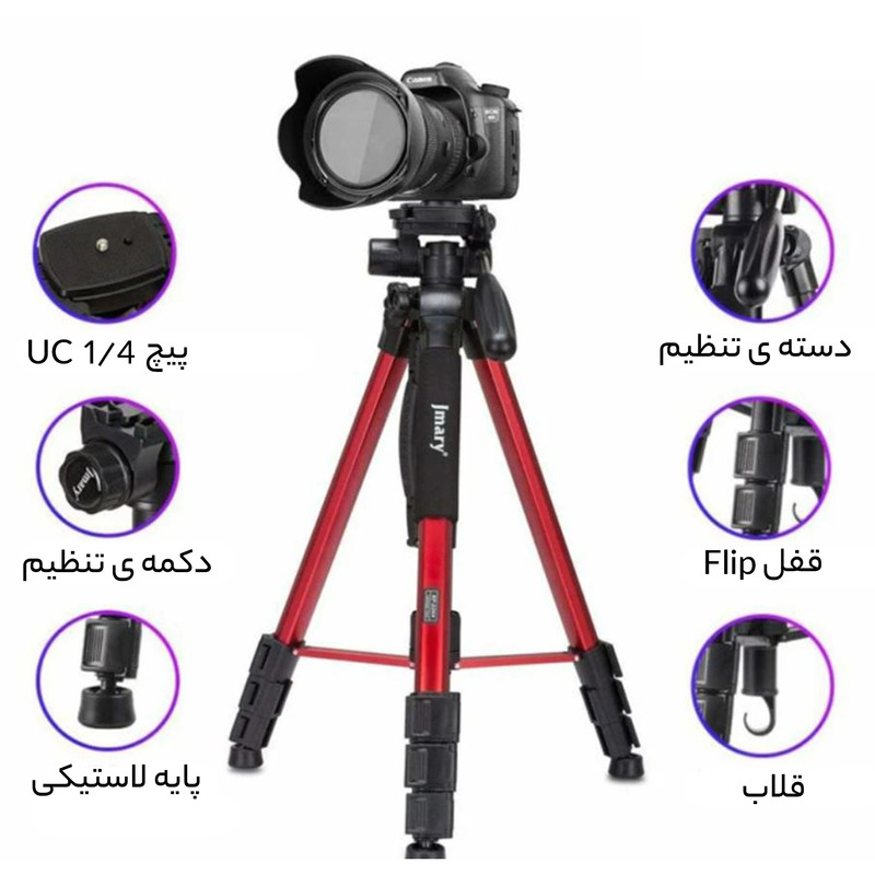 | سایر مشخصات | _ سه پایه دارای کیف مخصوص و گیره نگهدارنده موبایل است. _ سه پایه قابلیت تک پایه شدن دارد _ سه پایه تراز دارد |