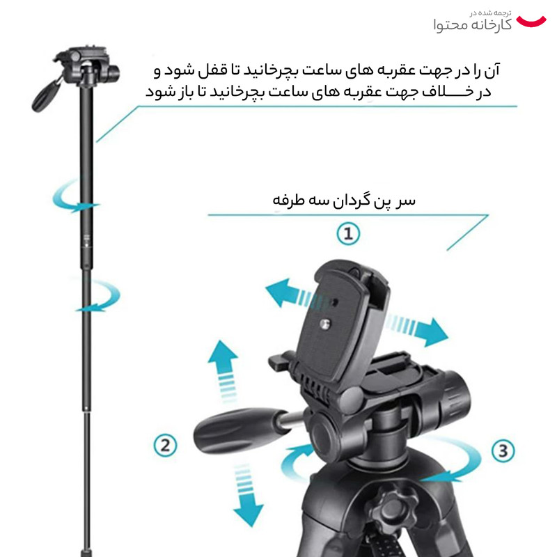 | سایر مشخصات | _ سه پایه دارای یک عدد ایرپاد مدل i12 و یک عدد کیف مخصوص و گیره نگهدارنده موبایل است. _ سه پایه قابلیت تک پایه شدن دارد _ سه پایه تراز دارد |