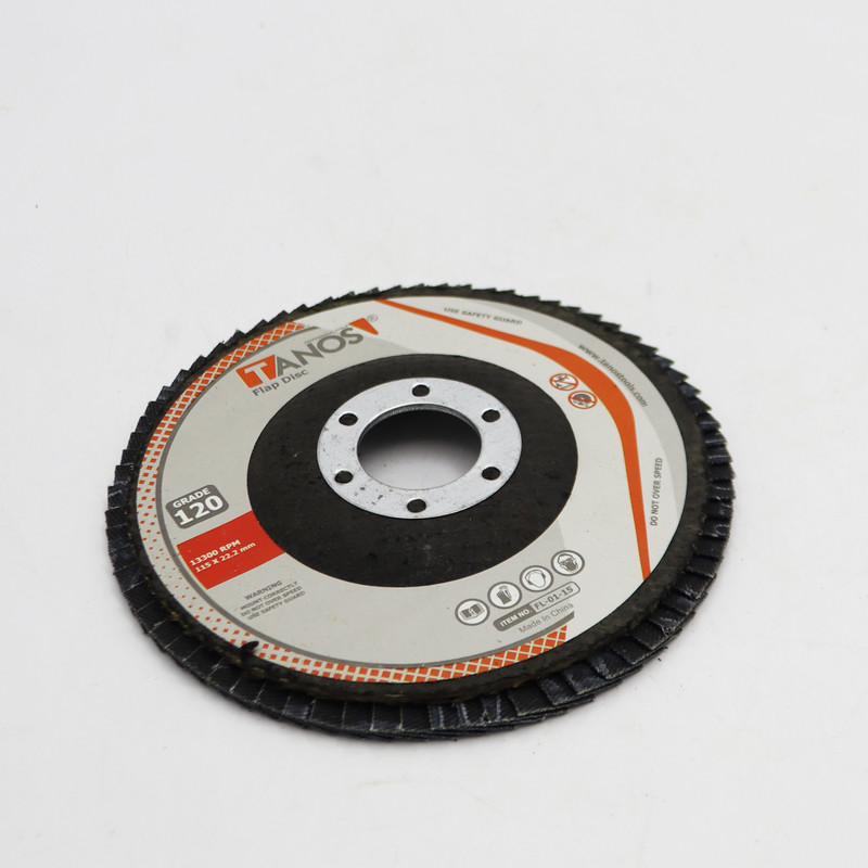 سنباده فلاپ دیسک تانوس با ابعاد 22.2x115 میلی متر با زبری 120میلی متر می باشد. طراحی این فلاپ دیسک جهت سایش آسان گوشه های دور از دسترس به صورت محدب انجام شده است و برای ایجاد کیفیت در کار برگ های فلاپ فشرده هستند.