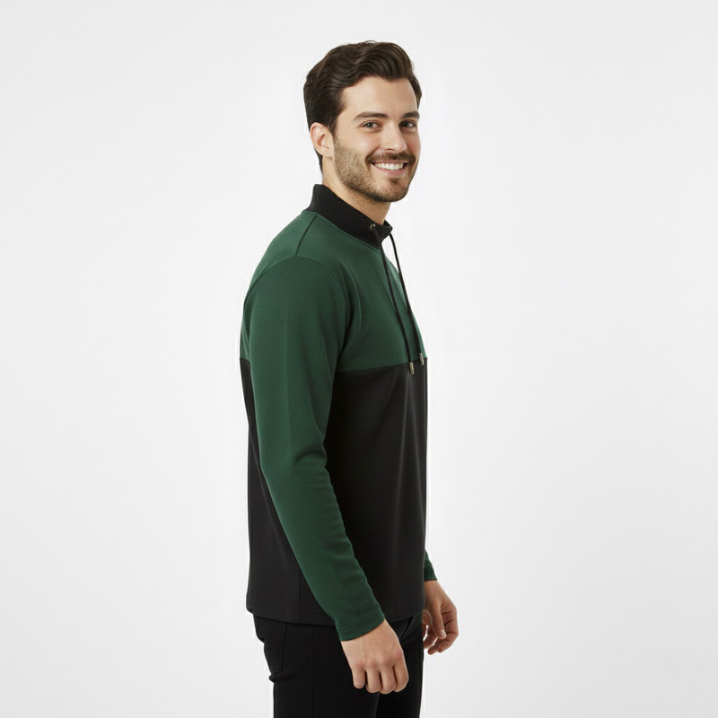 | توضیحات جنس | این سویشرت مردانه با ترکیب رنگ مشکی و سبز تیره، ظاهری مدرن و مینیمال دارد که به راحتی با سایر لباسها ست میشود. طراحی جلو بسته و آستین بلند آن، علاوه بر حفظ گرما، استایلی مرتب و منظم به شما میبخشد. جنس جودون به کار رفته در این محصول، علاوه بر لطافت، مقاومت بالایی در برابر شستشو و استفاده روزمره دارد. قد 70 سانتیمتری از سرشانه، پوشش مناسبی برای انواع اندامها فراهم میکند. این سویشرت بدون جیب و کلاه طراحی شده تا ظاهری ساده و کاربردی داشته باشد. |
