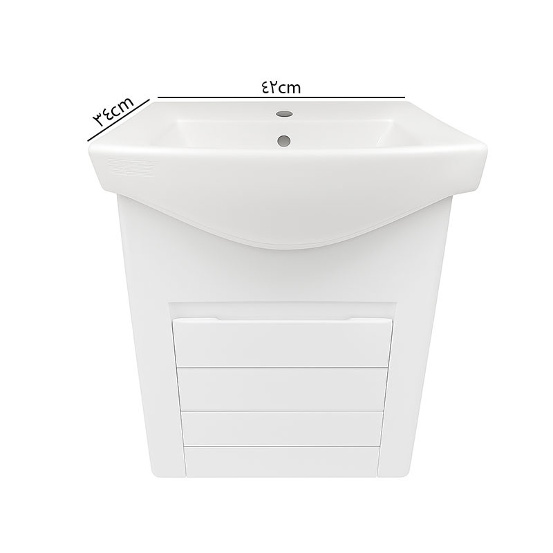 ست کابینت و روشویی مدل نسترن 42 کد 222 با ابعاد 36*42 سانتی متر مناسب فضاهای کوچک میباشد. ارتفاع از پایین کابین تا بالای سنگ روشویی 48 سانت می باشد .