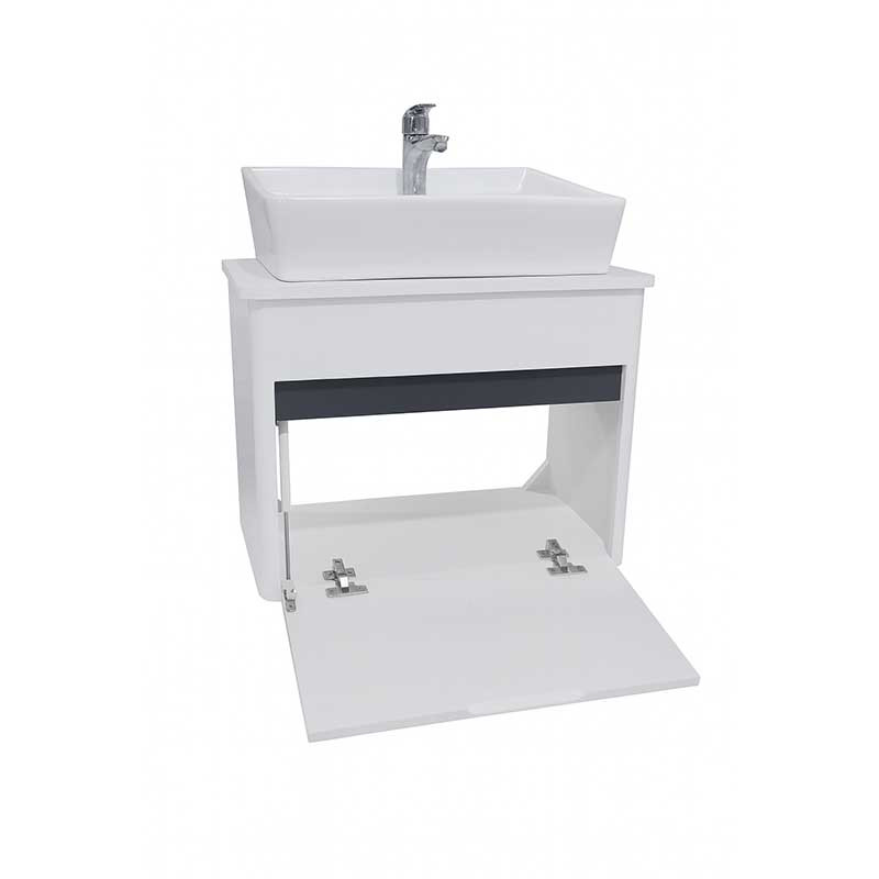 ابعاد کابین: 40*60، ابعاد سنگ روشویی : طول 50 عرض 37 و ارتفاع 16 سانتیمتر ، جنس کابینت : تمام پی وی سی ضدآب . مناسب حمام و سرویس بهداشتی می باشد. کابین دارای جک نگهدارنده و لولای ضدزنگ می باشد. سنگ چینی بهداشتی برند معتبر چینی کرد می باشد که با لعاب آنتی باکتریال و براقیت بالا و رنگ سفید می باشد که زیبایی و طراحی خاص و جدیدی دارد. تمام کابین با ورق 16 میل تولید شده است .