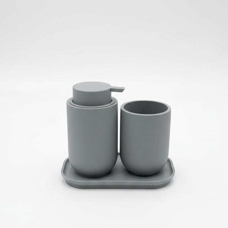 جنس این مجموعه از ترکیب پلیرزین و پلاستیک ABS ساخته شده که در برابر رطوبت، ضربه و مواد شوینده مقاومت بالایی دارد. سطح مات و رنگ طوسی ملایم آن، حس آرامش و تمیزی را القا کرده و بهراحتی با دکورهای مدرن یا مینیمال هماهنگ میشود.