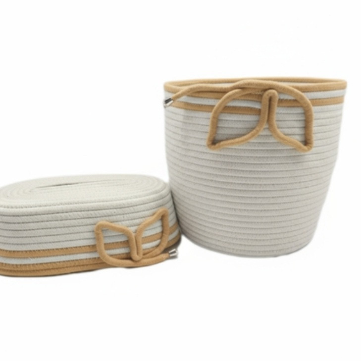 ست سطل و جای دستمال لالیپاپ مدل ۲ برگ، با ریسمان قیطان دوخته شده است و در عین نرم بودن ایستایی بالایی دارد.
