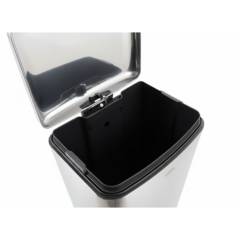 سطل مجهز به پدال فلزی مستحکم است که امکان باز و بسته شدن درب را بدون تماس دست فراهم میکند و رعایت کامل بهداشت را تضمین مینماید. همچنین سطل داخلی پلاستیکی قابل جدا شدن آن باعث سهولت در تخلیه زباله و نظافت میشود.با گنجایش ۴۰ لیتر، این مدل برای استفاده در آشپزخانههای بزرگ، ادارات و مکانهای پر رفتوآمد کاملاً ایدهآل است. طراحی درب نرمبازشو (Soft Close) از بسته شدن ناگهانی و ایجاد صدا جلوگیری کرده و استفادهی روزمره را دلپذیرتر میکند.