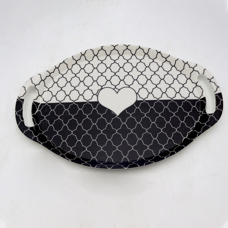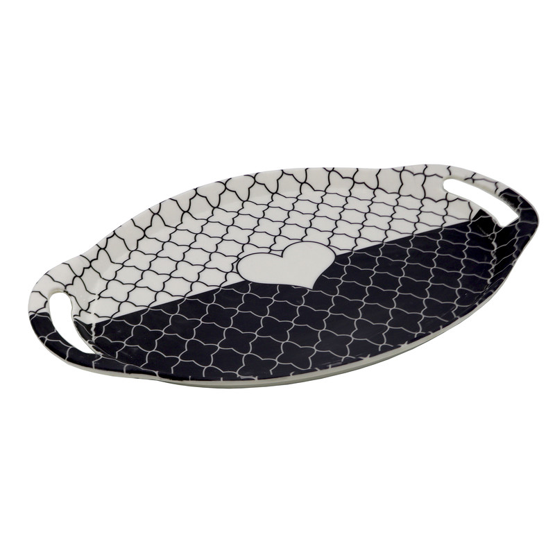 | سایر توضیحات | - سینی دسته دار مدل قلب - طرح : سفید مشکی قلب - کد :D70 - جنس: ملامین - ابعاد : 37.5x25.5x2 سانتیمتر - وزن : 395 گرم - بسیار سبک و مقاوم در برابر ضربه - قابلیت شستشو در ماشین ظرف شویی و با دست |