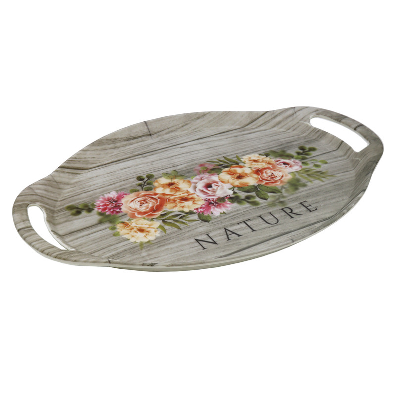 | سایر توضیحات | - سینی دسته دار مدل نیچر - طرح : طرح چوب گل دار - کد :D70 - جنس: ملامین - ابعاد : 37.5x25.5x2 سانتیمتر - وزن : 395 گرم - بسیار سبک و مقاوم در برابر ضربه - قابلیت شستشو در ماشین ظرف شویی و با دست |
