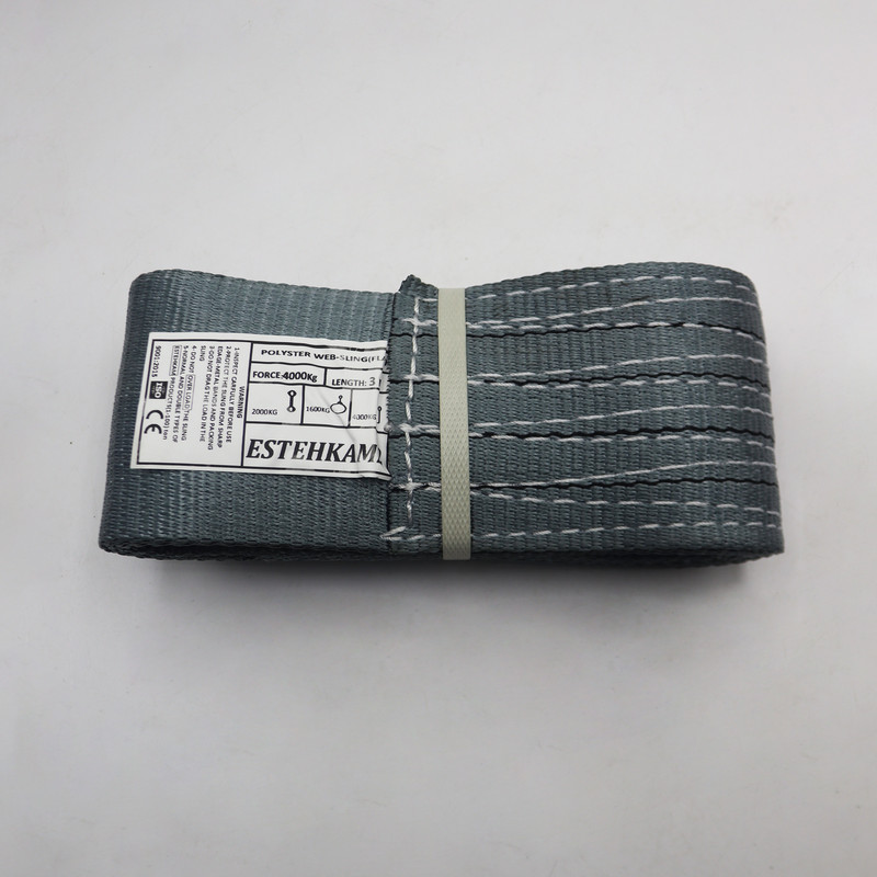 این محصول از جنس پلی استر بوده و عرض تسمه 10 سانتی متر می باشد. دو سر آن به صورت حلقه بوده و طول تسمه از سر یک حلقه تا سر حلقه دیگر 3 متر است. طول هر حلقه 34 سانتی متر است ولی اگر بخواهیم حلقه را به دور یک لوله یا جسم استوانه ای شکل بیاندازیم قطر استوانه مذکور حداکثر 20 سانتی متر می تواند باشد.تسمه فوق دولایه می باشد که این امر مقاومت آن را چند برابر می نماید به طوری که ضخامت تسمه چیزی حدود 6 تا 7 میلی تر است. قابليت تحمل وزن تسمه به صورت مستقيم 2 تن , به صورت U شکل 4 تن و به صورت دار حلقه 1600کيلوگرم می باشد.