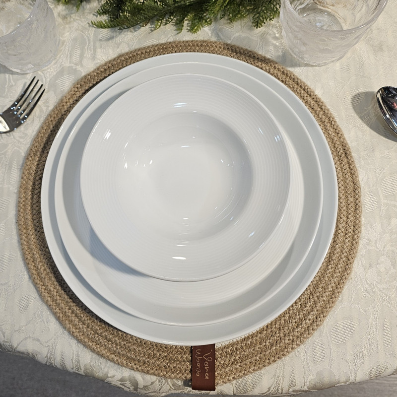دور زیربشقابی از جنس کنف است و رنگ انتخابی شما قسمت وسط زیربشقابی خواهد بود.